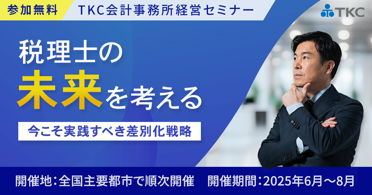 宇都宮市 を含む全国47会場で開催されるこのセミナーは、2025年6月から8月までの期間中、無料で参加することができます。参加対象は税理士と公認会計士で、共催はTKC全国会ニューメンバーズ・サービス委員会と株式会社TKCです。