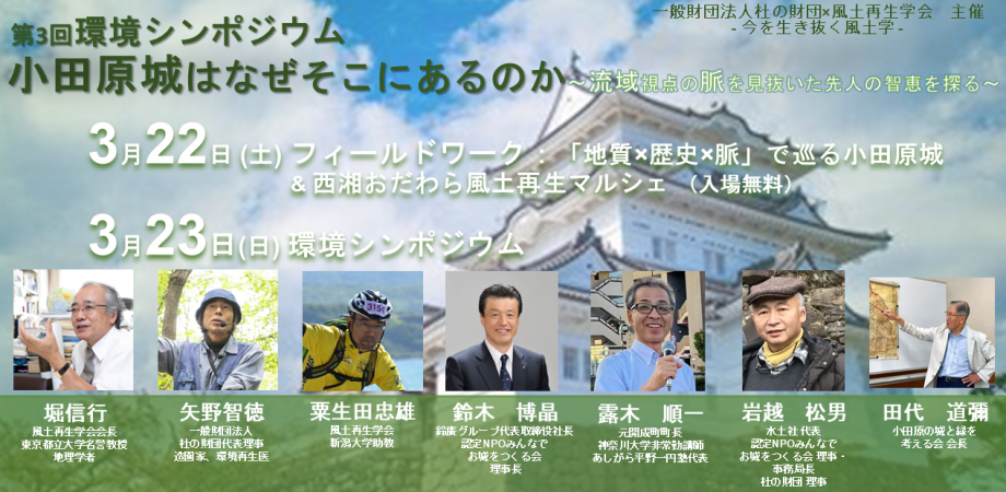 杜の財団と風土再生学会が主催する「小田原城・西湘の風土再生シンポジウム」が、2024年3月22日(土)と23日(日)に開催されます。